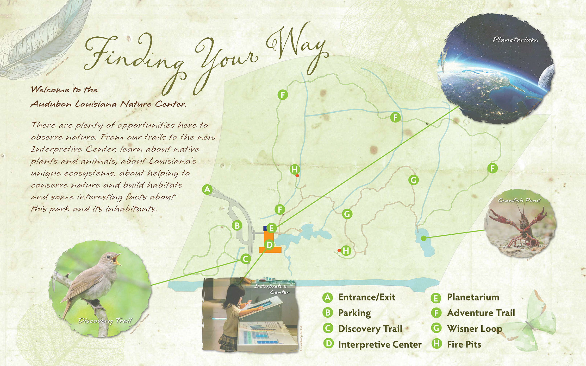 - Audubon Louisiana Nature Center will be directly ahead.